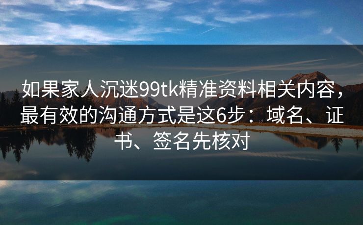 标题:如果家人沉迷99tk精准资料相关内容,最有效的沟通方式是这6步:域名、证书、签名先核对